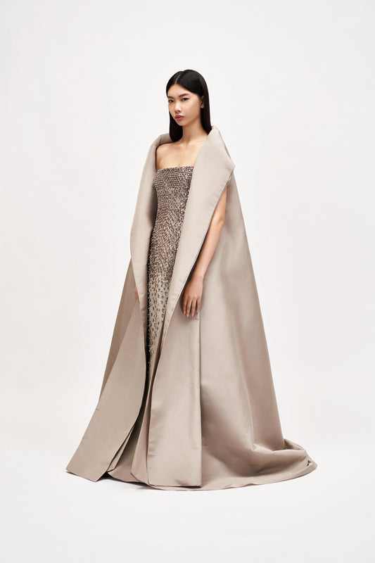 No 22 Dress with cape in silk faille moire