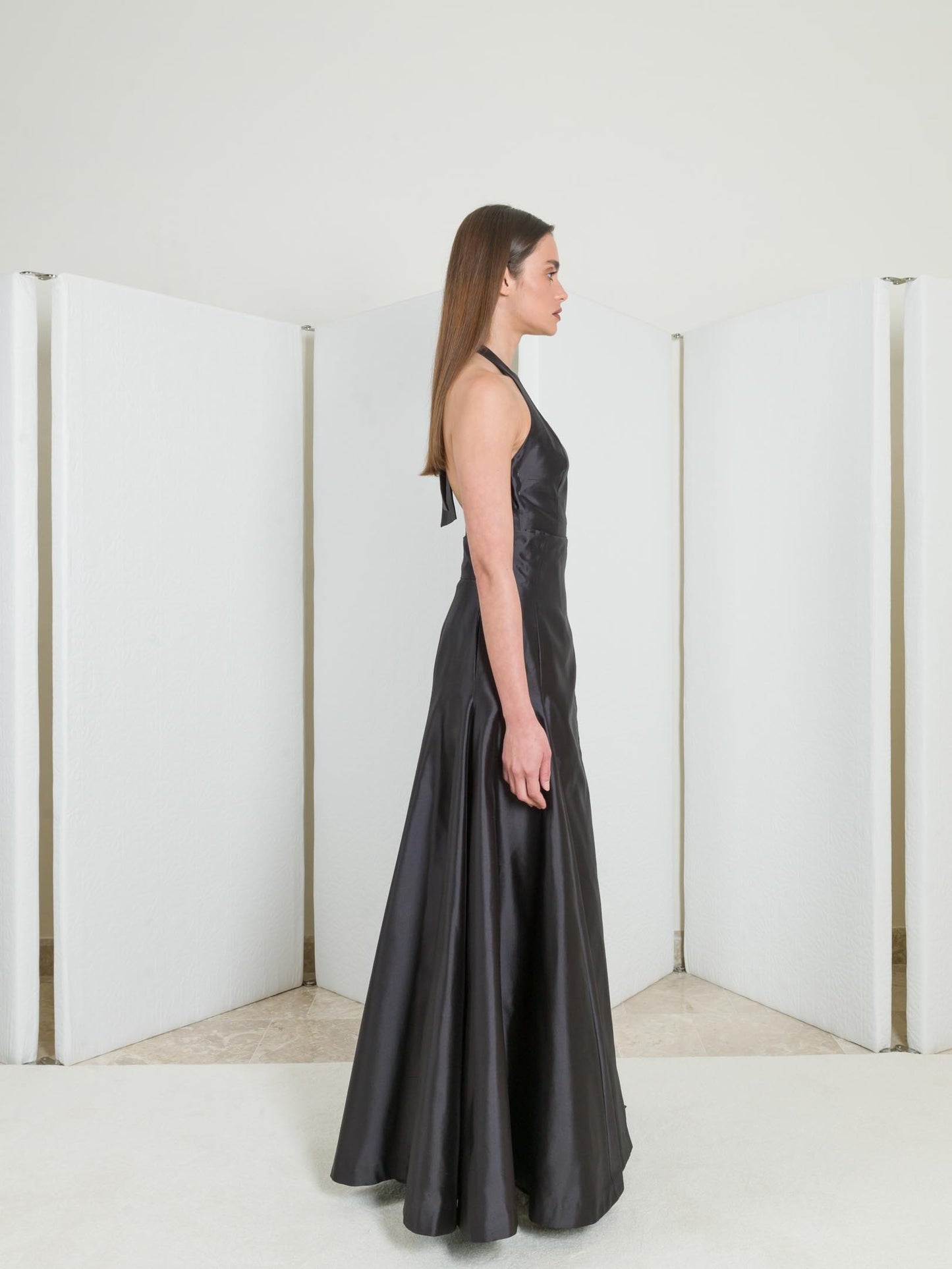 Halterback Top with High Waisted Wrap Skirt in Shantung