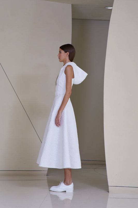 Hooded Top with Voluminous High Waisted Skirt in Quilt