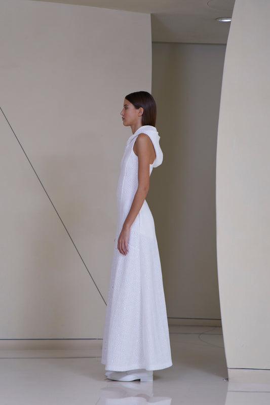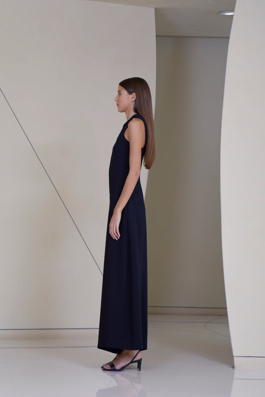 Sleeveless Hooded Jumpsuit in Silk Crepe