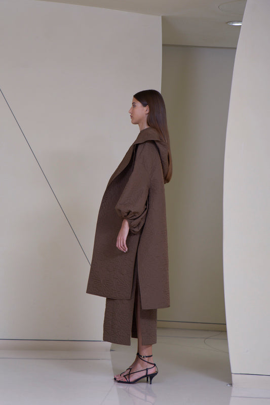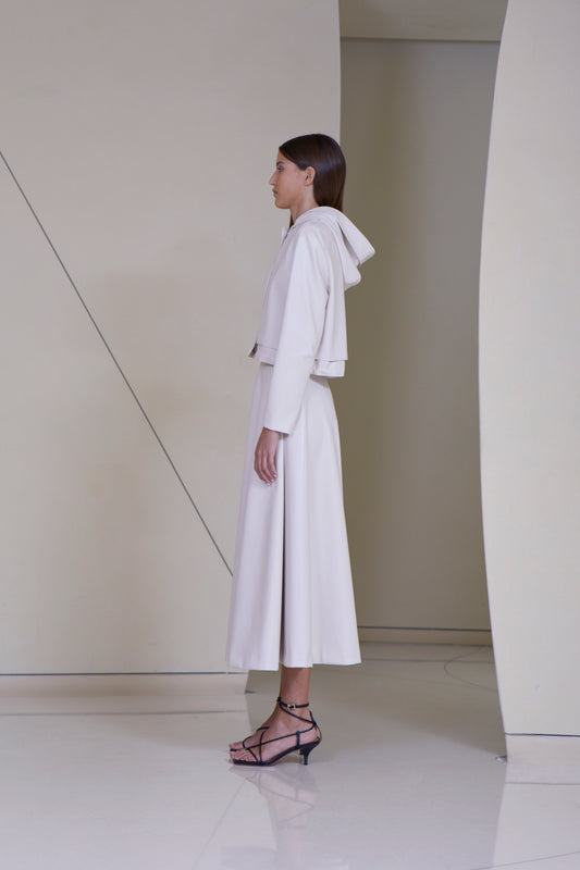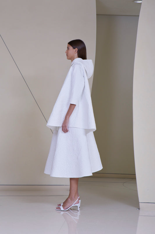 Hooded Top matched with Voluminous High waisted Skirt in Quilt