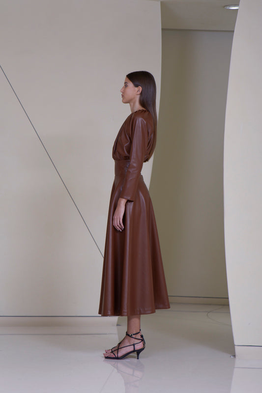 Open back Corset Top with Midi Circle Skirt in Faux Leather
